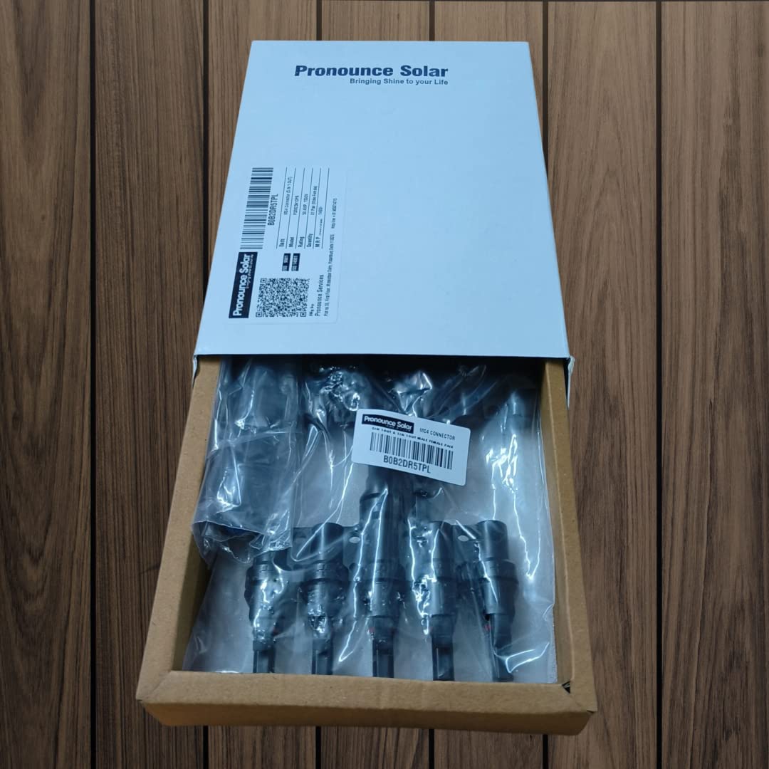 【MC4 Solar Connectors】Pronounce Solar 5in 1out Mc4 Connector Conductor pin is tinned Copper, Body is made of PPO + PA material, It makes a rock solid connection after you crimp the pin to the wire, and these are operated perfectly under heavy load.